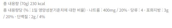 쫀득고소한 추억의 찰깨빵은 70g으로 양이 기본적으로 적은 빵이고, 열량은 230kcal로 양에 비해 높은 편이다.