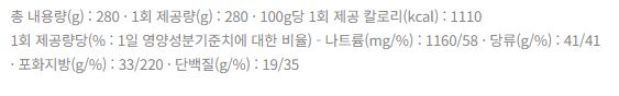 단백질은 9g에, 나트륨은 580mg으로 한 끼 식사로 적당한 수준이나, 당류가 무려 20g이나 들어있다.