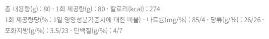 단백질은 4g에 나트륨은 85mg으로 너무나 적은 편이나, 당류가 26g으로 상당히 높다.