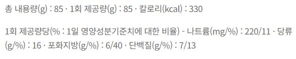 단백질은 7g에, 나트륨은 220mg으로 낮고, 당류는 16g으로 높은 편이다.