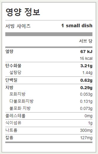 깍두기 영양 성분